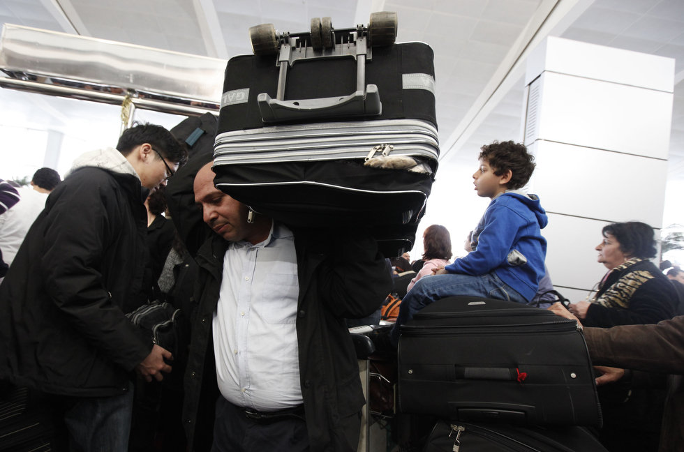 18. Мужчина с багажом в международном аэропорту Каира. Иностранцы продолжают в спешке покидать страну. (AP Photo/Victoria Hazou)