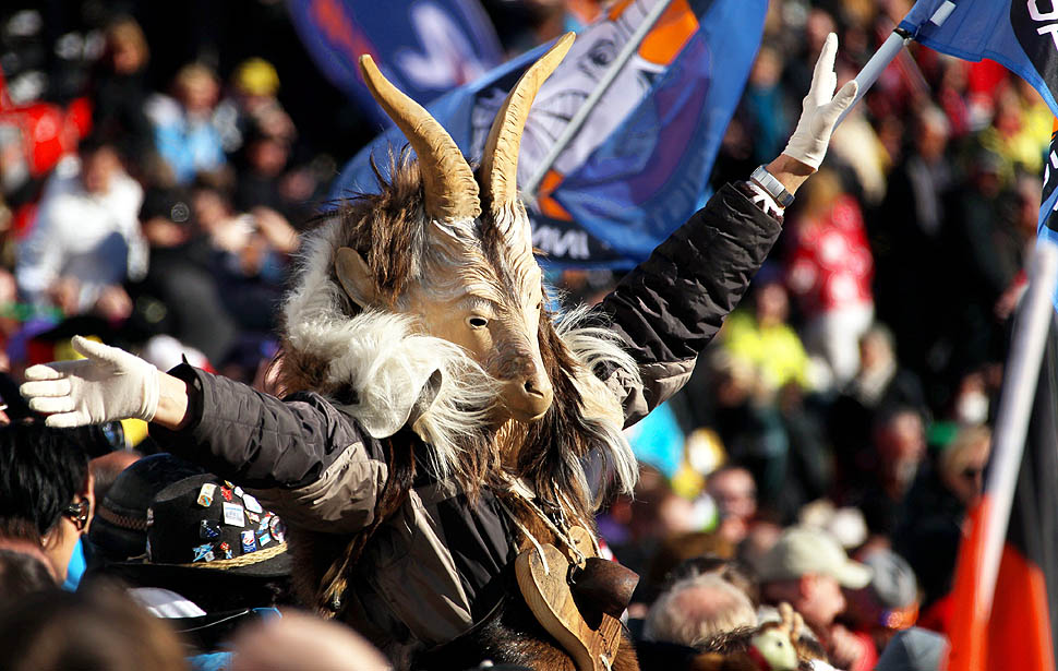 1. Поддерживающий итальянского спортсмена Кристофа Иннерхофера болельщик на Чемпионате мира по горнолыжному спорту в Гармиш-Партенкирхен. (STEPHAN JANSEN / EPA)