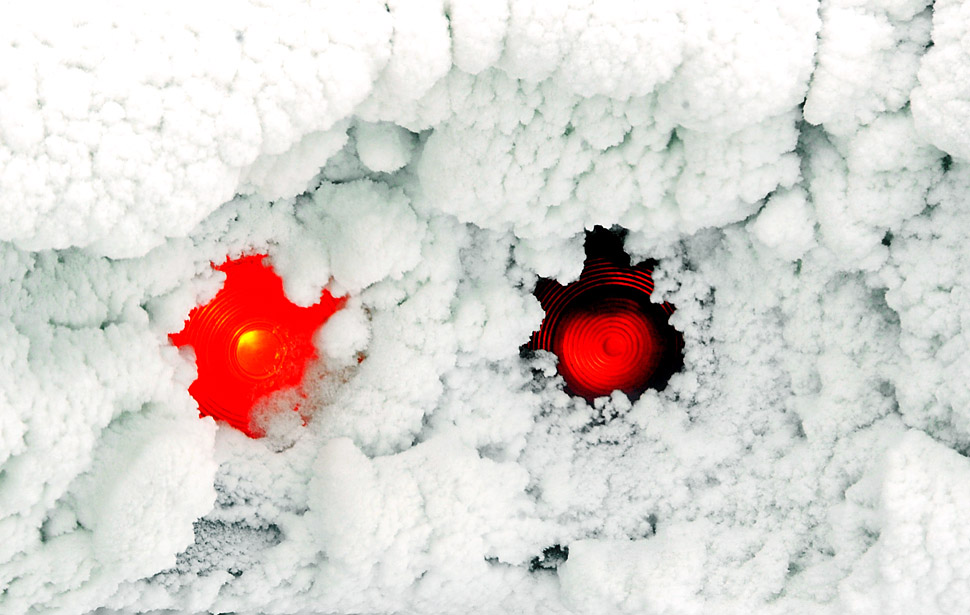 22. Фары автомобиля "выглядывают" из-под слоя снега в городе Джоплин, штат Миссури. (T. Rob Brown / Joplin Globe)