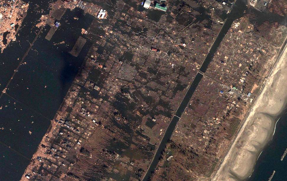 В этом выпуске вы увидите фотографии, сделанные со спутника, показывают масштаб последствий цунами, обрушившихся на северо-восточную часть Японии. Напомним, что серия сильнейших цунами с высотой волны до 10 метров обрушилась на Японию в результате землетрясения, произошедшего 11 марта. Оценку магнитуды самого сильного из подземных толчков повысили с 8,9 до 9,0 балла. Местные СМИ сообщают, что в одной только префектуре Мияги число погибших может достичь 10 000: еще тысячи числятся пропавшими без вести. Кроме того, аналитики говорят, что в результате землетрясения главный остров Японии – Хонсю – сместился на 2,4 м, а собственная ось Земли – на 15 см, в результате чего наша планета стала вращаться немного быстрее.
