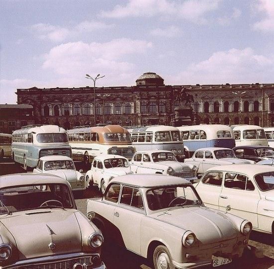 Картинка из прекрасного далека. Вокзал Дрездена начала 60-х. На переднем плане Trabant P50, затесавшийся в компанию трех «Москвичей», Skoda и невесть откуда взявшегося Renault 4CV