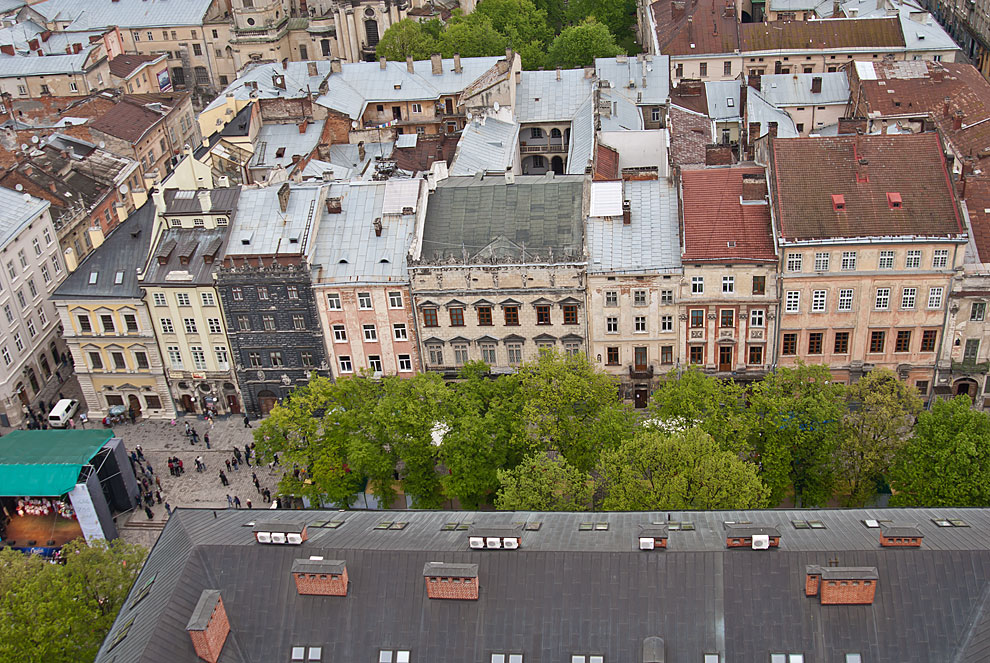 Продолжаем публиковать львовские фотозарисовки. На этот раз предлагаю небольшую подборку фотографий города сверху вниз, сделанных с Ратуши и балкона ресторана Панорама. (Смотрите выпуск День города во Львове: Праздничное шествие)