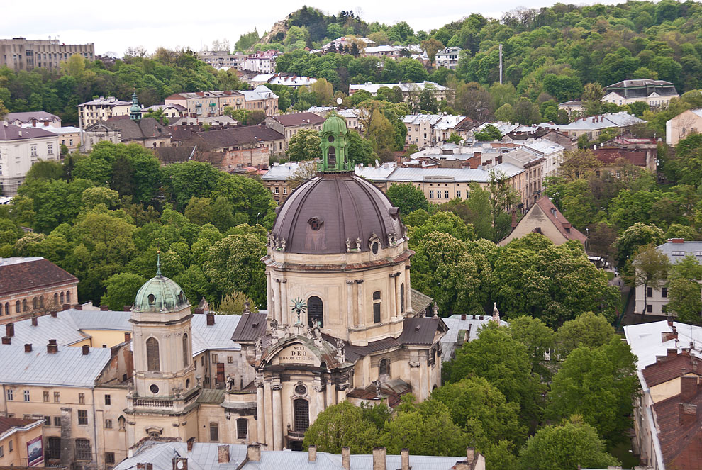 12. Слева - Высокий Замок, одна из возвышенностей холмистого Львова. На самой высокой точке — 413 м над уровнем моря, расположена смотровая площадка, с которой открывается чудесный вид на город (к сожалению, туда мы не попали).