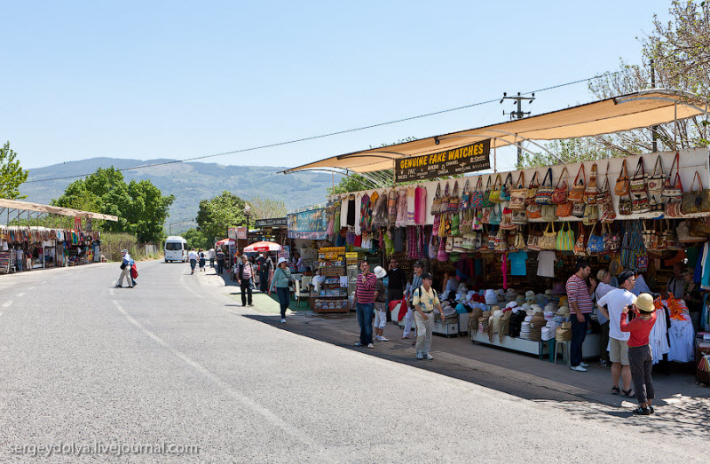 На выходе из древнего города торгуют различной сувениркой. Очень понравилась надпись "Genuine Fake Watches", что переводится как "Оригинальные поддельные часы". Неужели уже и подделки начали подделывать? Ай-яй-яй, куда катится этот мир? :)