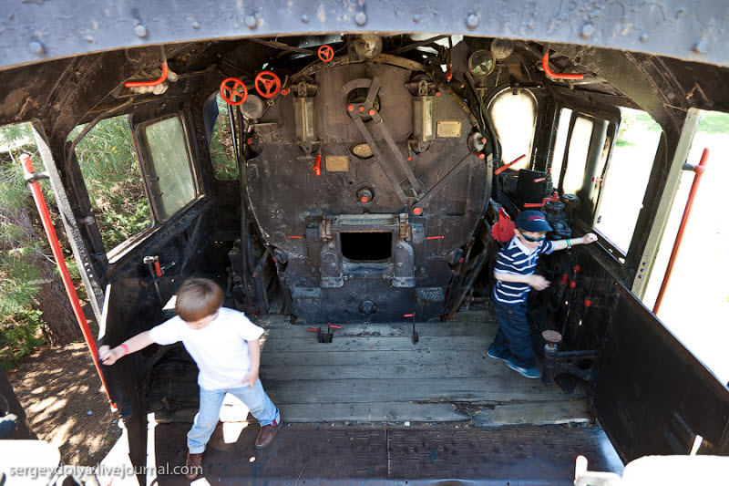 Дети были в полном восторге от музея и залезли в кабину практически каждого паровоза, дергали ручки, кричали "Ту-тууу" и ощущали себя настоящими машинистами: