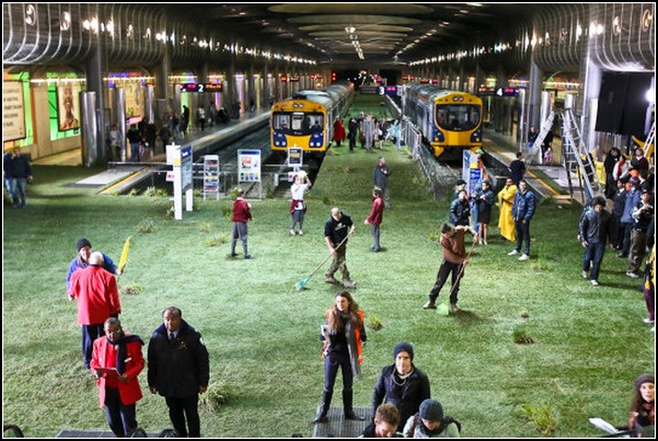 Руководство железнодорожного вокзала Britomart Station в Окленде решило, что никакого парка на крыше им не нужно. Они обустроили зеленый луг прямо внутри станции, на перроне. Для этого им пришлось развернуть там 1250 квадратных метров искусственного газона.