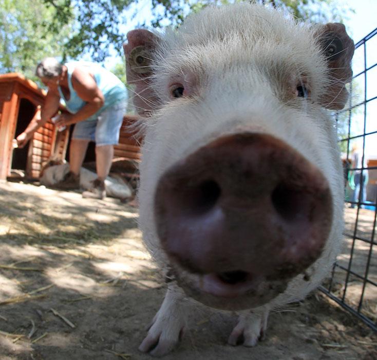 6. Один из четырех пузатых поросят по кличке Руби на ферме в Мэке, штат Колорадо, США. Владельцы этого приюта – Сью и Роки Роббинс – согласились взять двух 20-месячных поросят, которых использовали в исследовательской лаборатории, скорее всего, накачивая медикаментами. (AP Photo/Grand Junction Daily Sentinel, Christopher Tomlinson)