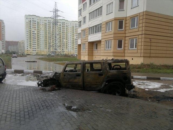 Этой ночью во дворе моего дома сгорел до тла хаммер. Обстоятельств я не знаю, т.к. спал сном младенца и ничего не слышал, но родители рассказали, то что были слышны выстрелы или что-то подобное, а потом нехило бабахнуло. Фотки на ваш суд