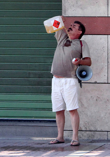 2. Мужчина выкрикивал протесты против правительства, банкиров и политических партий и грозил самосожжением в знак протеста.