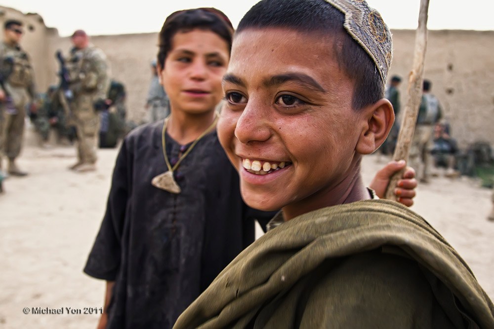 18. Мальчик в черном носит на шее амулет со строками из Корана, написанными на арабском. Такой амулет называется "тавиз" на языках пушту и дари.