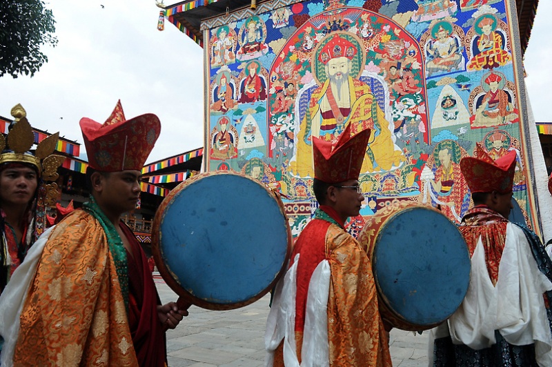 4. Свадьбу вместе с молодоженами празднует в буквальном смысле все 700-тысячное население Бутана: трехдневные торжества во всех городах страны сопровождаются танцами, карнавальными шествиями и застольями. Всего же посетить церемонию собираются 1,5 тысячи официальных гостей со всего мира.