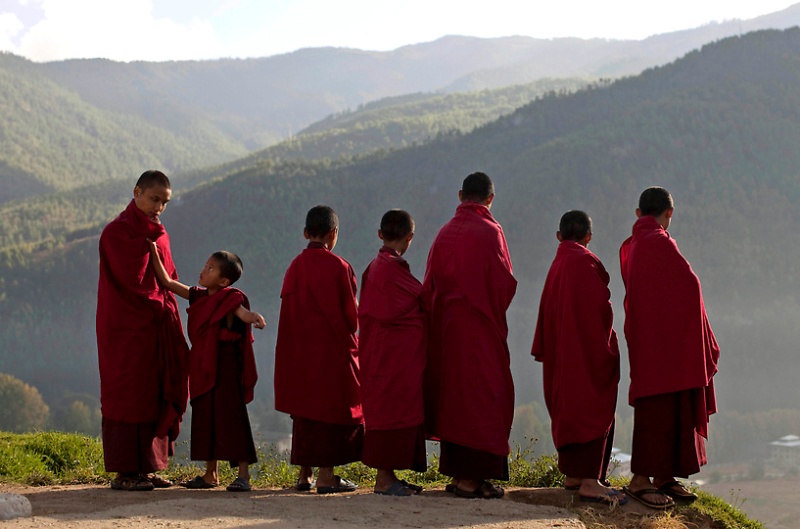 22. Буддийские монахи-послушники в Бутане стоят вне монастыря в Тхимпху, столице страны, в среду, 12 октября 2011 года.