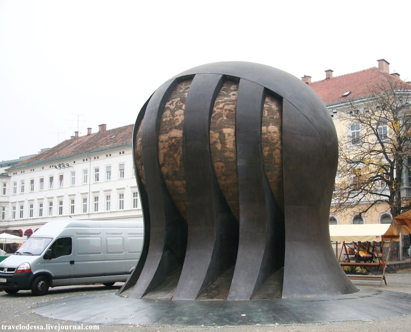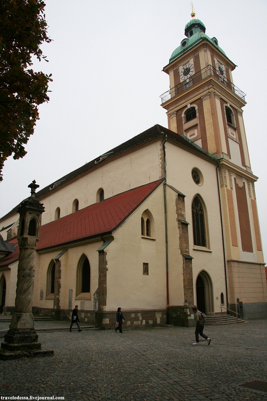 Очень быстро мы вышли на главную площадь Марибора. Ничем особенным она не отличается. Здесь мы видим городскую ратушу, церковь Святого Алоиза и памятную колонну в честь тех, кого унесла страшная чума. Наверное, будь бы в тот день солнечная погода, фотографии и виды были бы поярче...