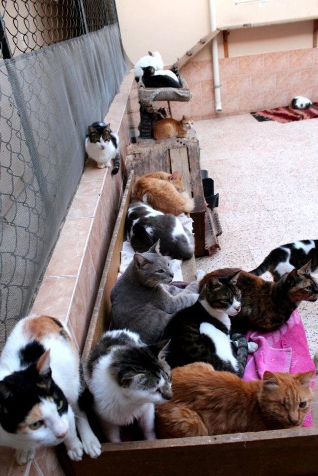 В Египте кошка с древних времен считалась священным животным, поэтому египтяне не могут себе позволить, чтобы коты разгуливали по улицам и лазали по помойкам в поисках еды. В городе Шабрамант есть частный приют для дворовых котов. Всего в нем три комнаты, в которых стоят диваны с одеялами для каждого из питомцев. Вот это кошатники высшего уровня.