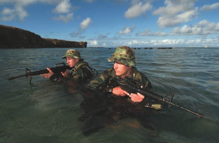 SEAL Cпецназ Военно-морских сил США (ВМС США), предназначенный для проведения разведывательных и диверсионных операций с моря. В буквальном переводе "тюлень" (также "морской котик"), является аббревиатурой Sea - Air - Land (Море - Воздух - Земля). "Тюлени" ведут свою историю с Гражданской войны 1861 года, когда северяне использовали боевых пловцов, чтобы находить и обезвреживать мины. Нынешний корпус "тюленей" был сформирован в 1962 году, их "крестным отцом" также считается президент Кеннеди. "Тюлени" принимали активное участие в войне во Вьетнаме, в Ираке и в Афганистане. Каждый боевой взвод насчитывает 16 человек в двух отделениях. Отделения разбиваются на группы по четыре человека, которые при необходимости могут разойтись на пары. Отряд SEAL насчитывает 200—210 человек, за исключением 6-го отряда, состоящего из пяти взводов, разделенных на четыре группы по восемь бойцов. Общая численность SEAL вместе с дополнительными подразделениями составляет, по различным оценкам, до 2900 чел..