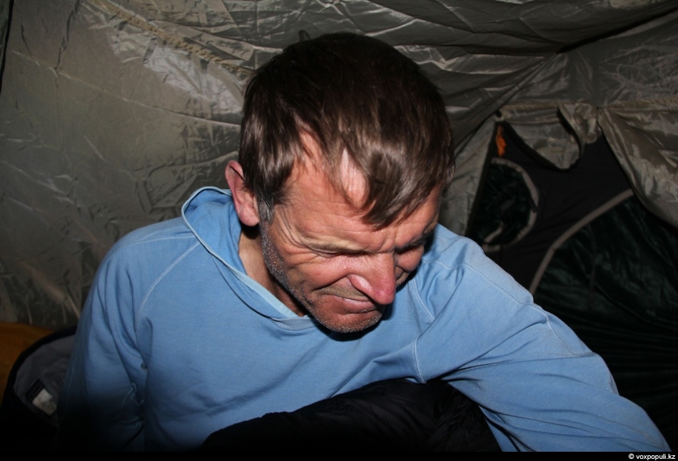 35. 05 августа. 6 утра, вчера был день рождения Дарека, а сегодня моему сыну исполнилось 3 года. Пожелание сыну: «Так уж получилось, что когда ты родился, я месил снега пика Ленина на Памире. И в каждый твой день рождения твой папа в холодах, вдалеке от тебя. Но всем теплом своей любви к тебе, мой сын Исатай, я желаю тебе расти здоровым и нам на радость!» (фото Пивцов В.)
