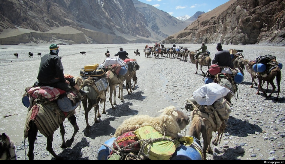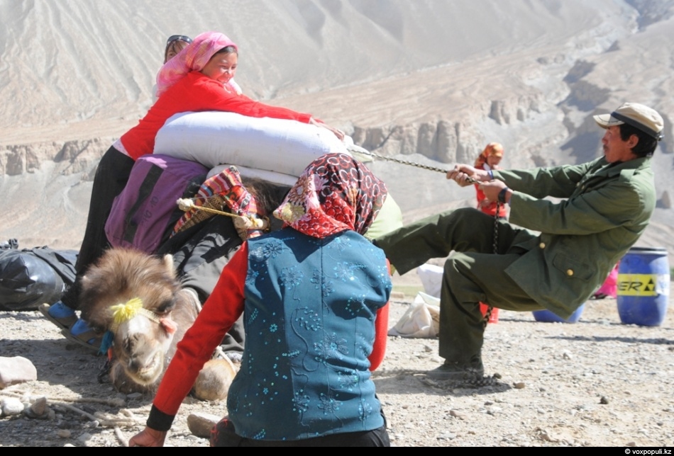 5. Наш караван стартовал из поселка Илик, здесь местные жители, этнические казахи и киргизы, сдают в аренду верблюдов. Сервис этот очень дорогой, но они монополисты, так как вертолетная заброска для альпинистов в Китае запрещена, а найти сотню носильщиков возможности нет