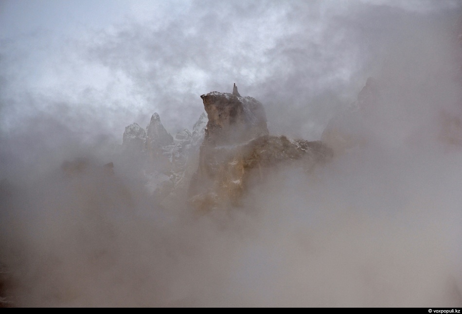 7. 24 июня. Утром было облачно, ветренно. В горном районе, через который мы шли к базовому лагерю, немало безымянных вершин, на которые не ступала нога человека. В облаках на вершине я высмотрел фигуру из камня похожую на молящегося ангела