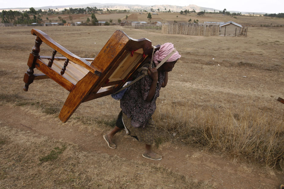 17. Женщина уносит мебель с места боя двух враждующих племен, окраина Моло, Найроби, 28 февраля 2008 года. (REUTERS/Zohra Bensemra)