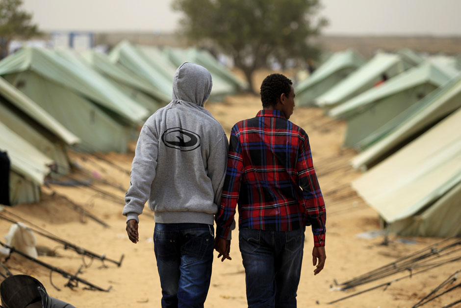18. Сомалийские беженцы из Ливии в лагере у ливийской границы, Тунис, 10 марта 2011 года. (REUTERS/Zohra Bensemra)