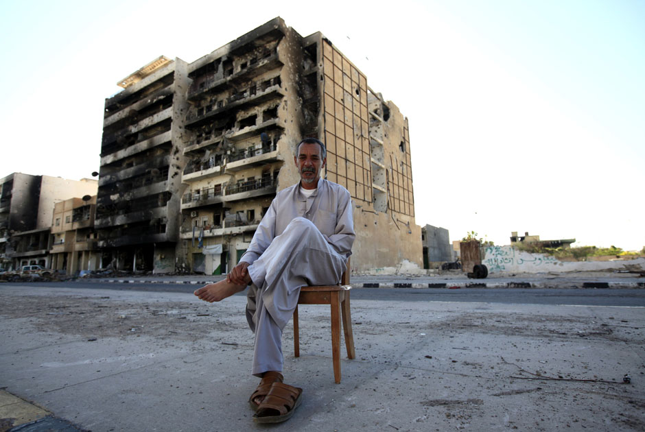 32. Мужчина на улице, разрушенной в ходе боев между повстанцами и силами Каддафи, Триполи, Ливия, 29 мая 2011 года. (REUTERS/Zohra Bensemra)