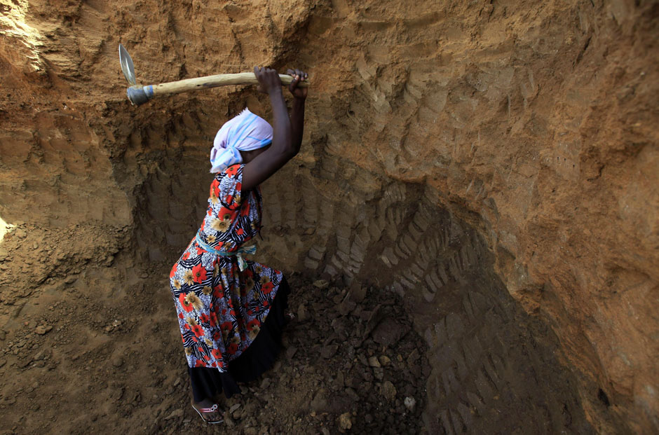 34. Внутренняя беженка рубит киркой глину для изготовления кирпичей неподалеку от лагерф в Аль-Фашере, Дарфур, 14 апреля 2010 года. (REUTERS/Zohra Bensemra)