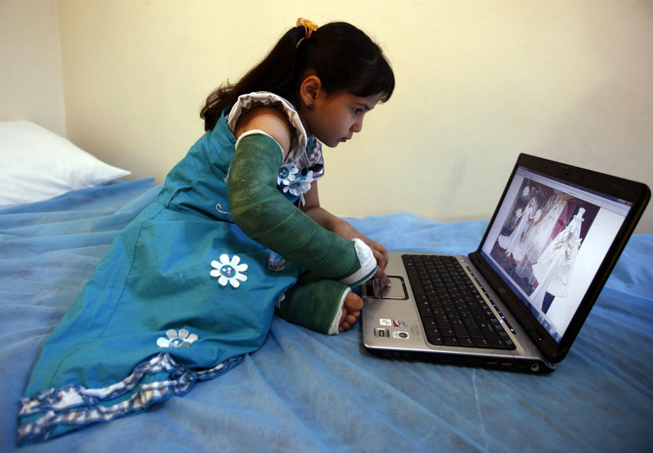 38.Шестилетняяя Малак Аль Шами, потерявшая ногу, когда в ее дом был уничтожен огнем установки "Град", в больнице города Мисрата, 3 июня 2011 года. От взрыва погибли ее сестра Родиана (1 год) и брат Мохаммед (3 года). (REUTERS/Zohra Bensemra)