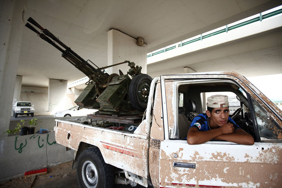 48. Повстанец в машине с установленной в кузове зенитной пушкой на контрольном пункте возле аэропорта Триполи, 1 сентября 2011 года. (REUTERS/Zohra Bensemra)