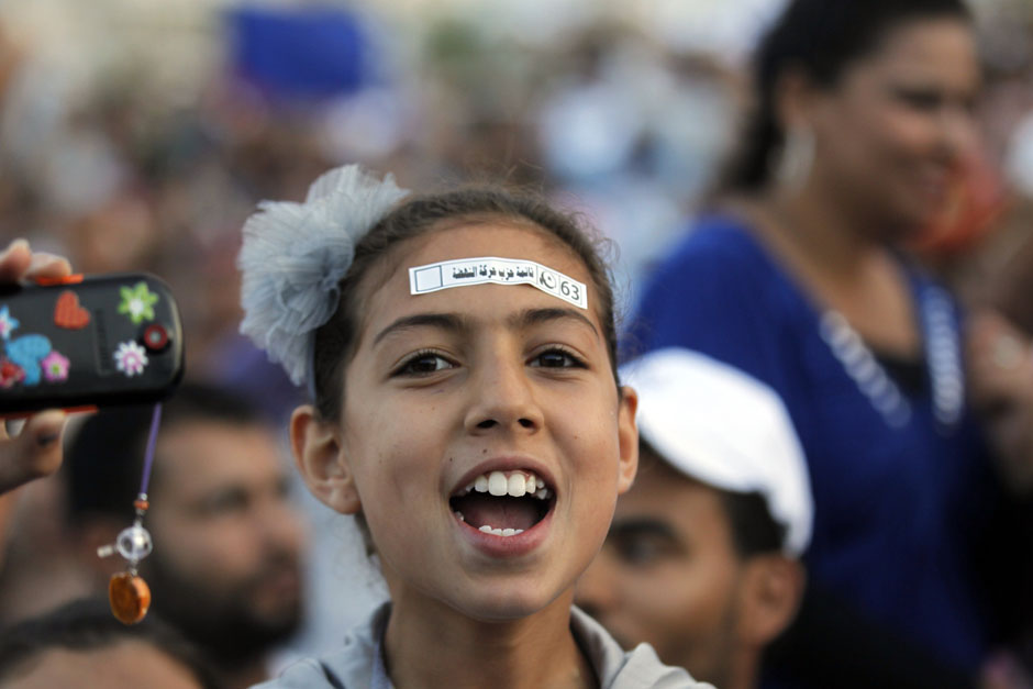 51. Девочка скандирует лозунги на закрытии съезда исламистской Партии возрождения в Тунисе, 21 октября 2011 года. (REUTERS/Zohra Bensemra)