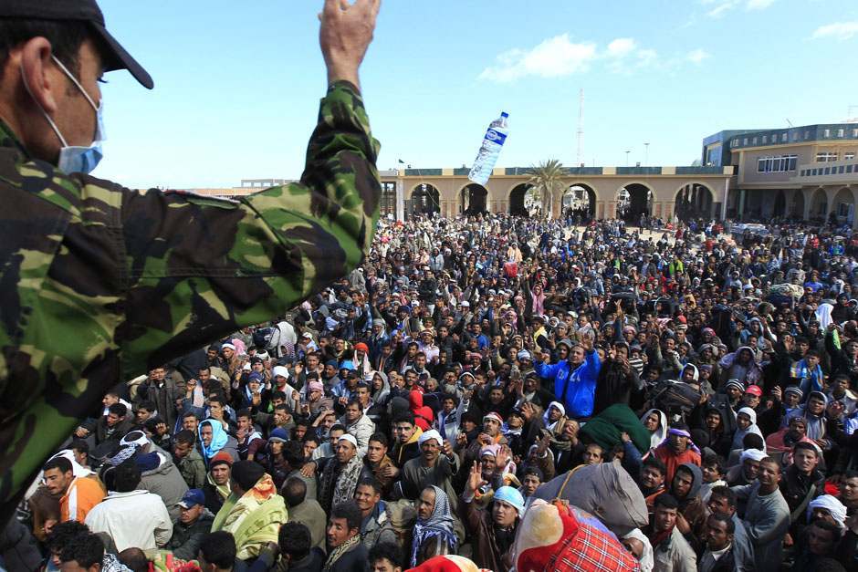 45. Египтяне бегут из Ливии, ливийско-тунисская граница, 1 марта 2011 года. (REUTERS/Zohra Bensemra)