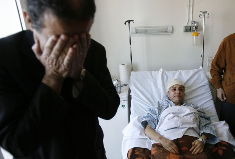 60. Сотрудник ООН плачет у больничной койки своей раненой коллеги Карлы Руиды в Алжире, 13 декабря 2007 года. (REUTERS/Zohra Bensemra)