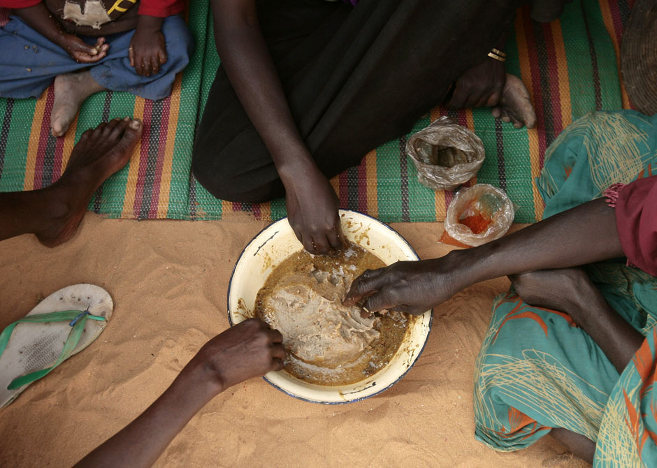 62. Трапеза суданских беженцев в лагере Зам Зам в Аль-Фашере, Дарфур, 12 марта 2009 года. (REUTERS/Zohra Bensemra)