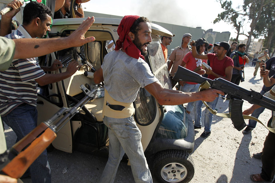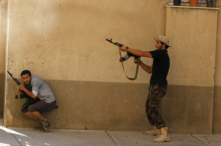 65. Ливийские повстанцы выбивают остатки сил Каддафи из района Абу-Салим в Триполи, 25 августа 2011 года. (REUTERS/Zohra Bensemra)