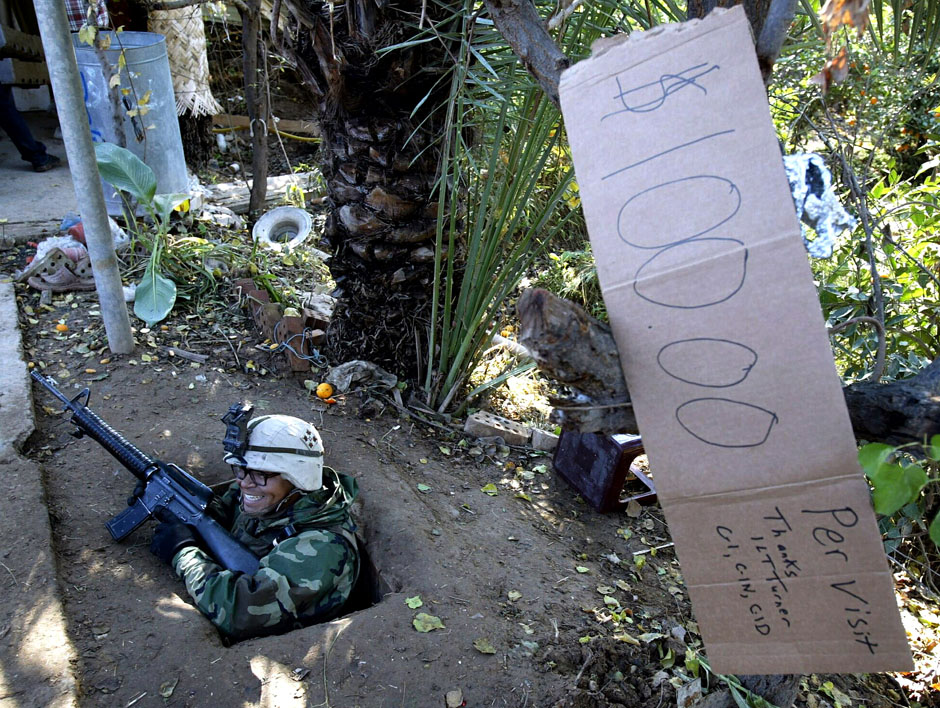 70. Сержант Рамирес Рикардо из 4-й пехотной дивизии фотографируется в окопе, где нашли Саддама Хусейна, Тикрит, 21 декабря 2003 года. (REUTERS/Zohra Bensemra)