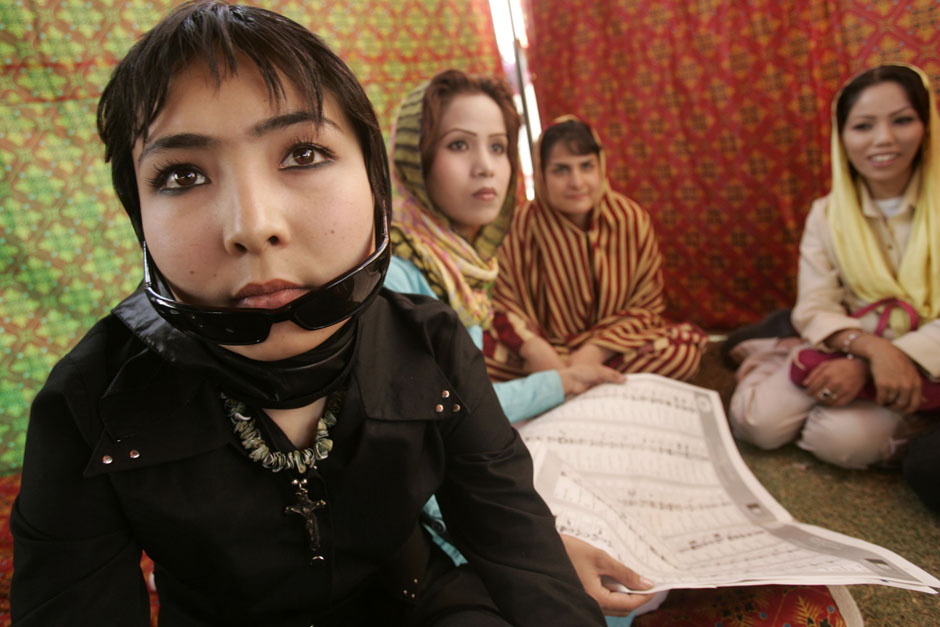 71. Афганская певица Мериам Мурад (слева) из группы "Arian" на концерте, организованном выборным правительством в Кабуле, 16 сентября 2005 года. (REUTERS/Zohra Bensemra)