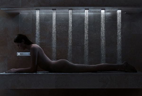 Компания Donbracht создала горизонтальный душ. Он выгодно отличается от душа обычного двумя параметрами. Во-первых, в нем можно полностью расслабиться, потому что вы не стоите, а лежите. Во-вторых, в этом положении вода лучше омывает ваше тело.