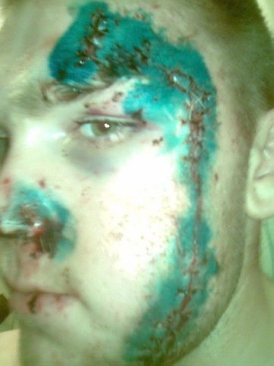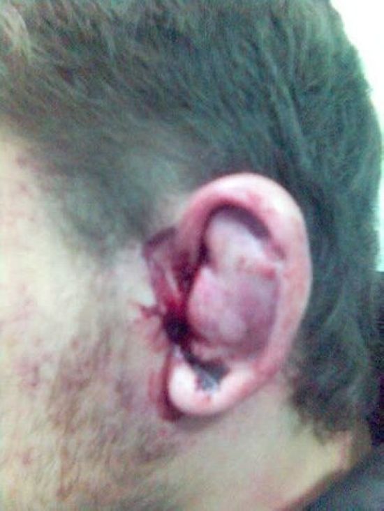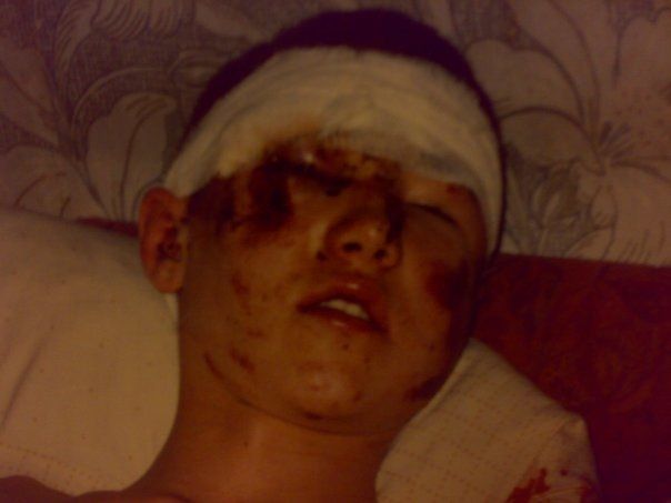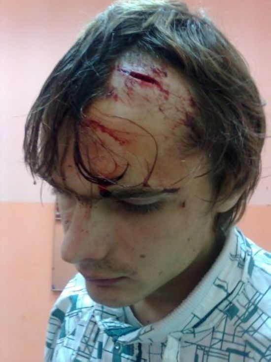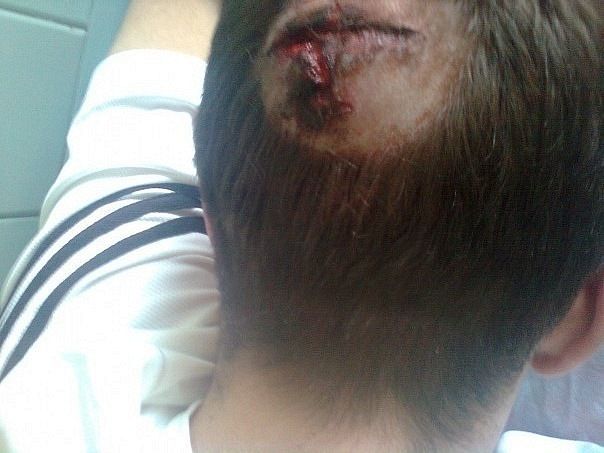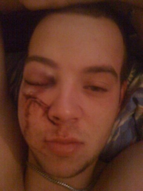 ударили по очкам вскользь, ими же порвало щеку, зашивать не стали