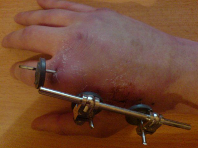 консолидируемый перелом второй пястной кости и разрыв кольцевых связок. Двоечку кидал. С левой упал, правая в стену полетела)))