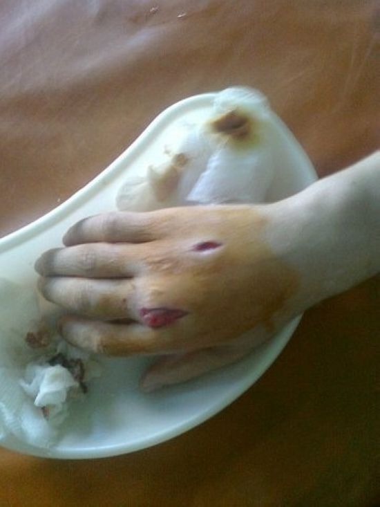 после операции на 2-ой день флегмона !!!! правой кисти третипястной кости ! рука в кулак год не сжимается (((