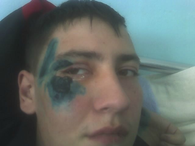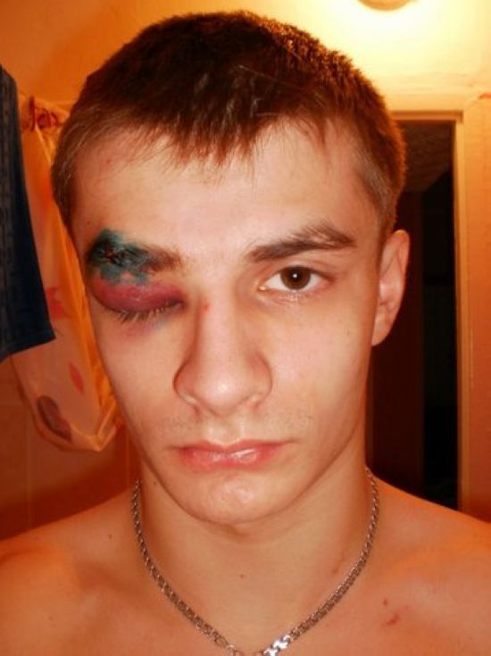 шли из кружки втроем, навстречу два товарища, одного из моих приятелей толкнули со словами "вы за что куцева избили" или чтото типо того, пока стоял вдуплял получил по очкам слева (даже не видел его). На итом их атаки закончились и они выхватили (походу пьяные были) - мне просто не повезло, что в очках был.