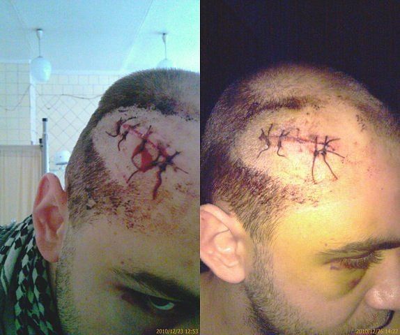 самый прикол в том- что это последствия- после удара битой по голове- я встал и продолжал биться за себя) а спустя 2 дня заболела голова и тут скорая за мной приехала- трепанацию делали!