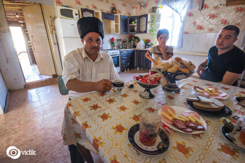 Традиционно, у женщины должна быть длинная юбка до пола. У мужчин традиционная одежда — папаха. Рассказав об этом, Юрий убегает в комнату искать в шкафу шапку. Для фотографии он одевает её.