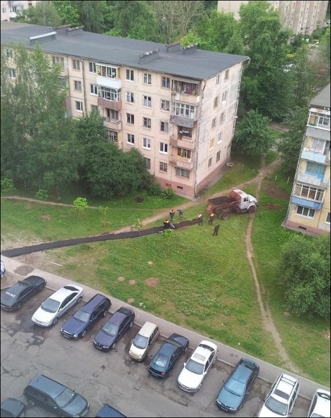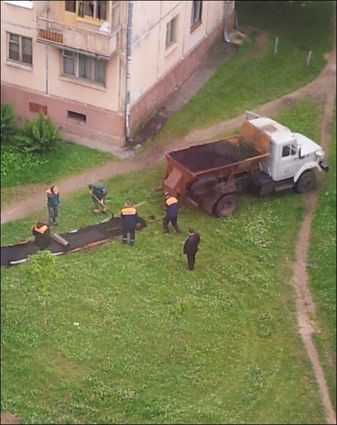 В Санкт-Петербурге асфальт уложили поверх травы (4 фото)