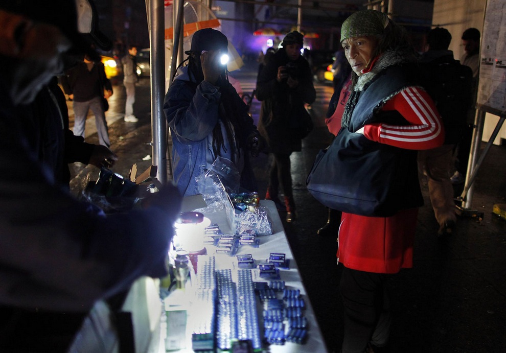10. Женщина спрашивает цену фонарика у уличного торговца. Батарейки, фонарики — на вес золота в обесточенном Нью-Йорке. (REUTERS/Carlo Allegri)