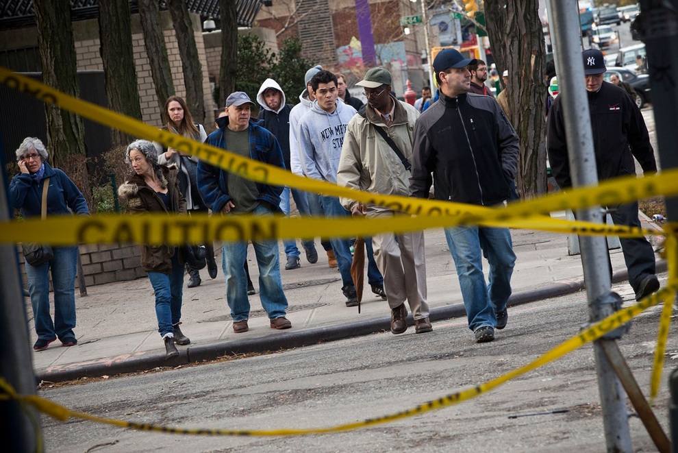 11. Оградительные ленты перекрывают опасное место на пешеходной дорожке Первой авеню, Манхэттен. (Andrew Burton/Getty Images)