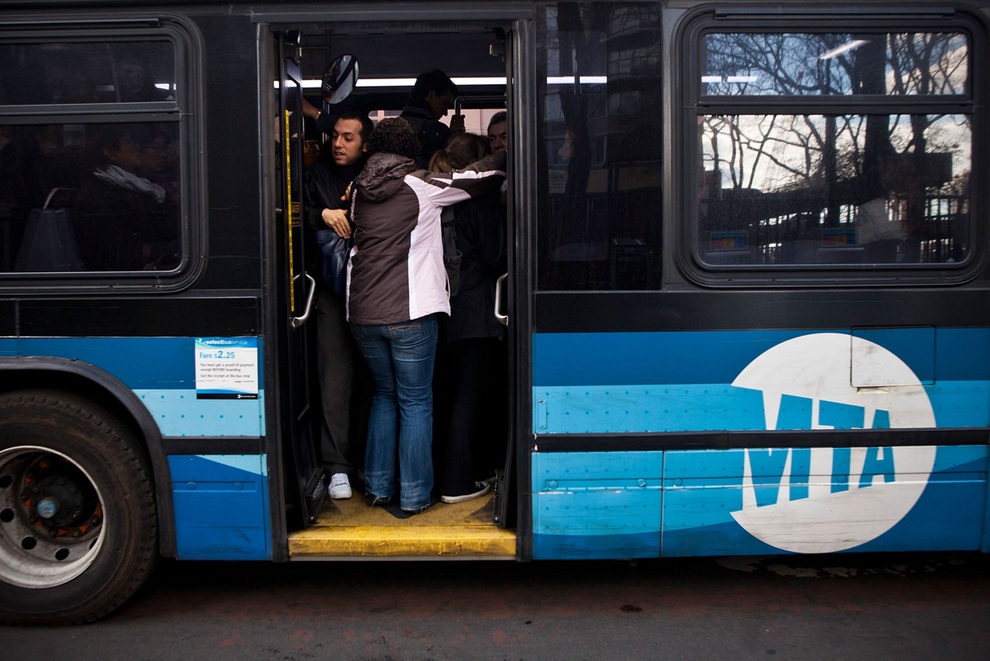 13. Забитый автобус на Первой авеню, Манхэттен. Совершенно нетипичное зрелище для Нью-Йорка. (Andrew Burton/Getty Images)