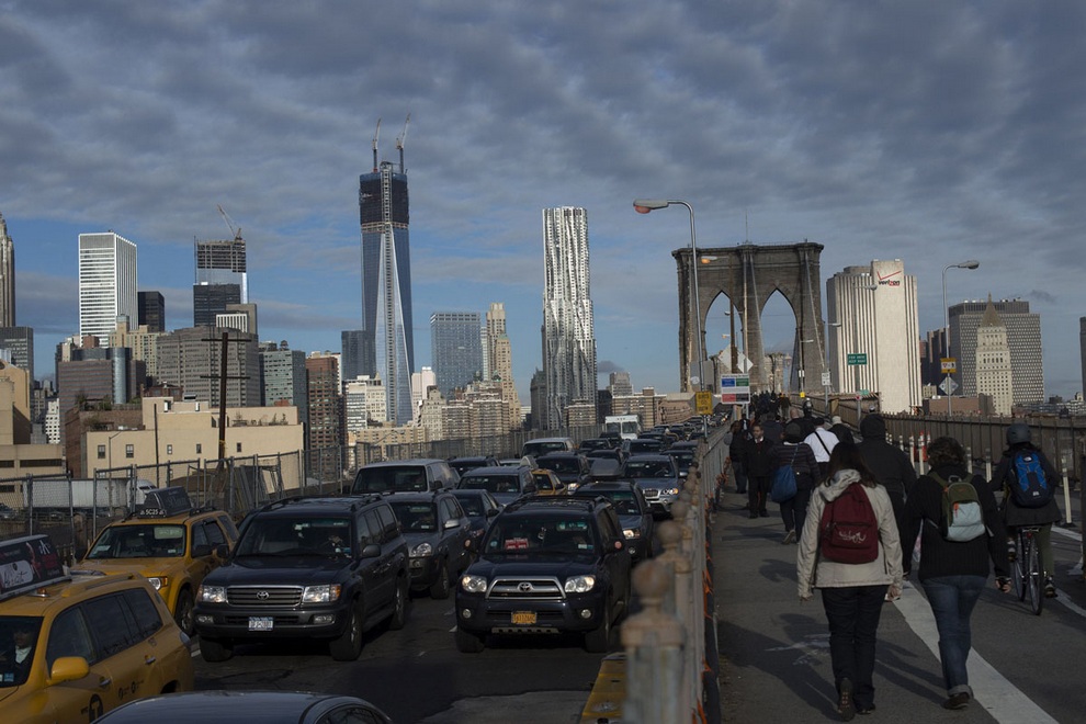 14. Люди идут пешком по Бруклинскому мосту на работу. (REUTERS/Keith Bedford)