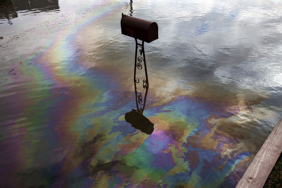 19. Затопленная улица блестит от примеси бензина, Линденхёрст, штат Нью-Йорк, США. (REUTERS/Lucas Jackson)
