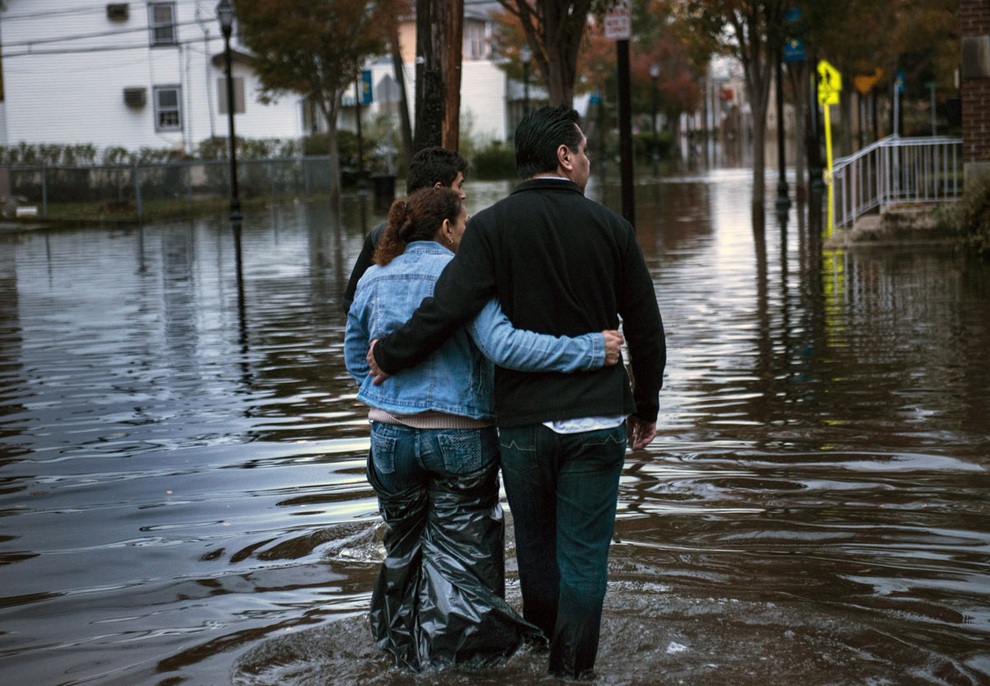 1. Мужчина несет свою жену по затопленной улице Хобокена, штат Нью-Джерси, США. Количество жертв от урагана «Сэнди» достигло 45 человек. Главной причиной смертей стали затопленные улицы, падающие деревья и неосмотрительность людей. (REUTERS/Gary Hershorn)