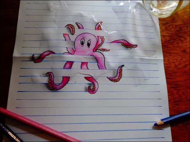 3D-рисунки в блокноте (20 фото) Категория: Креативненько, PEGI 0+ 14 ноября 2014 Художник Жоао Карвалью создает рисунки, которые вызывают иллюзию объема и глубины на простом листе писчей бумаги. +30